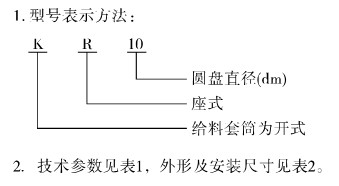 2、KR座式圓盤給料機給料套筒為開式;