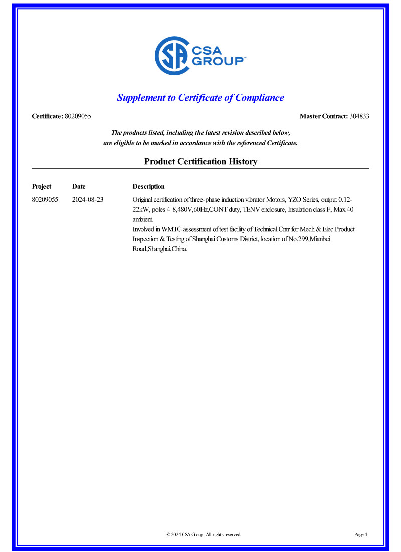 電機CSA認證證書